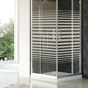 mamparas con cristales transparentes, traslúcidos o mixtos.